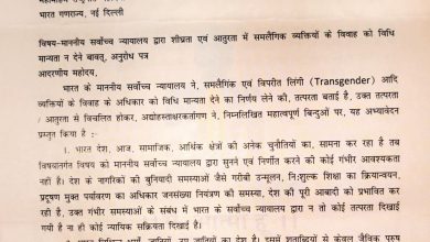 जैन समाज ने समलैंगिंग विवाह के खिलाफ खोला मोर्चा ,राष्ट्रपति को जैन आचार्य शिव मुनि ने लिखा पत्र …
