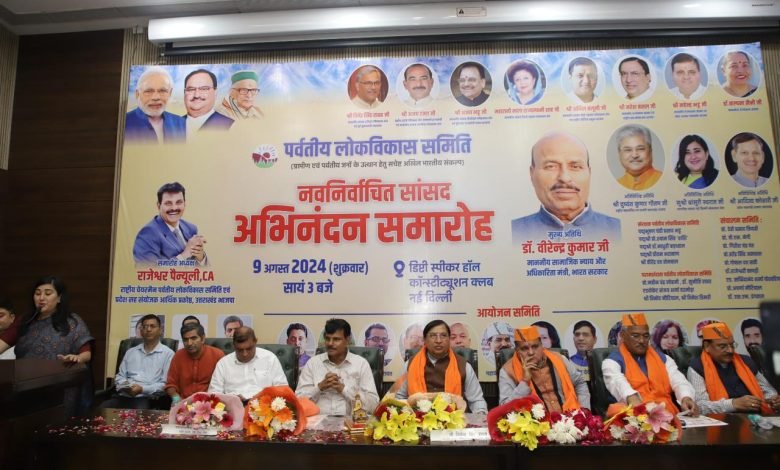 पर्वतीय लोक विकास समिति द्वारा शुक्रवार, 9 अगस्त, 2024 को सायं 3 बजे से, डिप्टी स्पीकर हॉल कॉन्स्टिटूशन क्लब, नई दिल्ली में नवनिर्वाचित सांसद अभिनंदन कार्यक्रम का आयोजन किया गया | कार्यक्रम की अध्यक्षता “समारोह समिति” के अध्यक्ष व भारतीय जनता पार्टी उत्तराखंड के सह संयोजक चार्टर्ड एकाउंटेंट राजेश्वर पैन्यूली द्वारा किया गया|